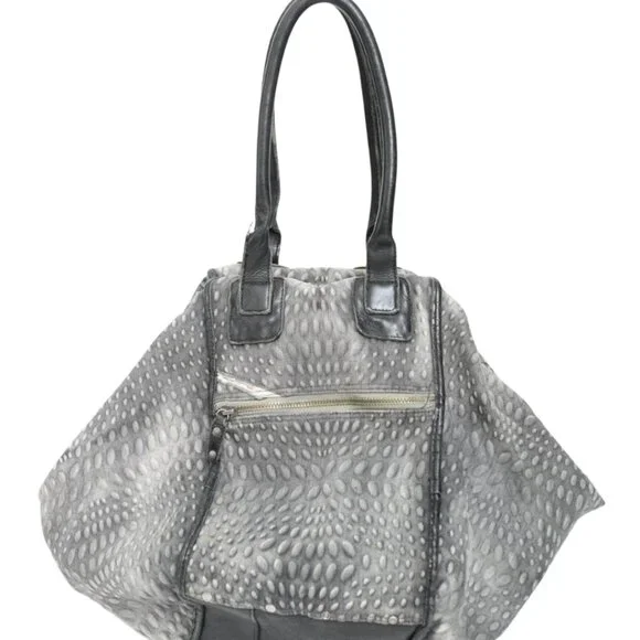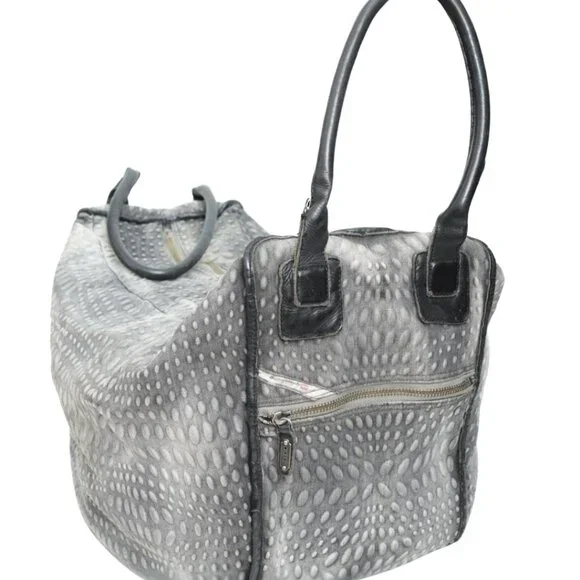 Brand: DieselYear: FW 2011Size: Weekenderthe gray embossed denim and leather garment washed Divina has a particular treatment. a silicone pattern that is placed under the denim gives the material its decorative element: fake croco. the pumice stone wash creates a natural vintage effect. sourced straight from 2011, near perfect condition. minor wear to handles.