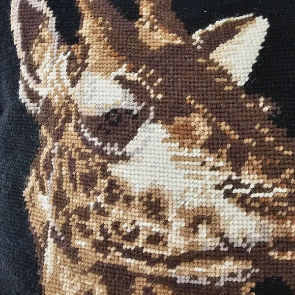 Vintage Giraffe Needlepoint Pillow with a charming animal print pattern is an excellent decor item for any home. This pillow has a unique design and is perfect for adding a touch of vintage/retro style to your living space. The 100% wool needlepoint technique used in making this pillow ensures that it is durable and long-lasting. Backed with black velveteen featuring a zip closure.This pre-owned pillow is in excellent condition, and its shape and style make it a perfect addition to any home's interior design. The pillow is suitable for use in the living room, bedroom, or any other room in your home. Add this vintage giraffe needlepoint pillow to your collection today and create an aesthetically pleasing living space.***pillows were displayed with a fur throw and have a few hairs that transferred.