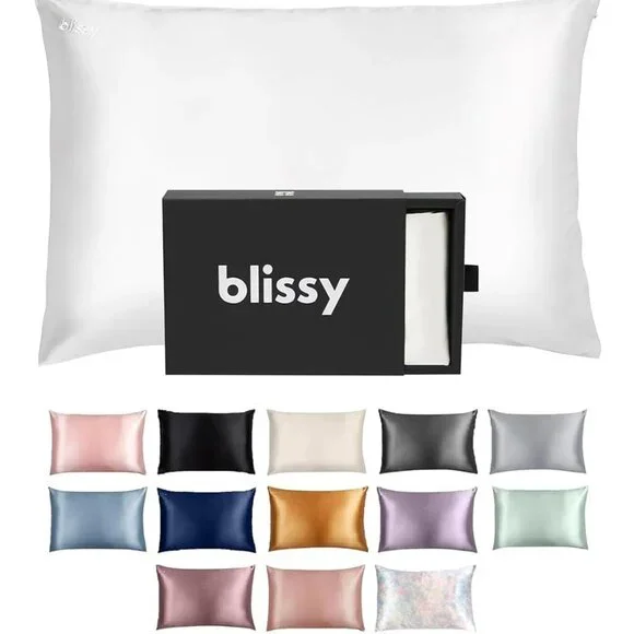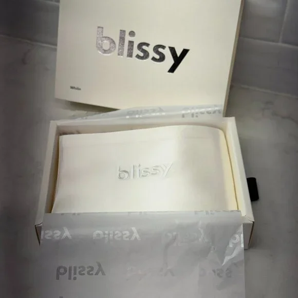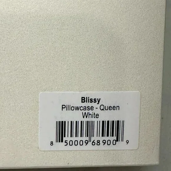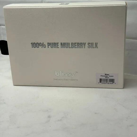 NWT Blissy Silk Pillowcase - 100% Pure Mulberry Silk Color: WhiteSize: Queen with Hidden Zipper Fabric: 100% 22-Momme 6A Grade Mulberry SilkCertification: Oeko-Tex® certified: Safe, eco-friendly and non-toxicCare: Machine WashableBlissy Silk Pillowcases are handmade and crafted from high quality 22-Momme 100% Pure Mulberry Silk.A completely natural and hypoallergenic silk pillowcase designed by a team of expertsNew in Box from a smoke/pet free home